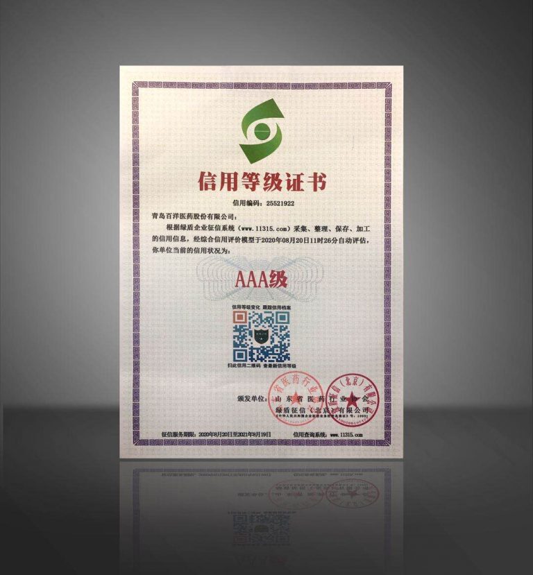 “诚信者,天下之结也”,诚信是现代企业的黄金守则,行业信用建设是社会信用体系建设的重要组成部分。为有助于医药行业持续健康开展,增强行业自律,山东省医药行业协会自2016年起,持续召开信用等级评价,将受评企业分为 AAA、AA、A、B、C 五个等级,其中 AAA 级为最高信用等级。